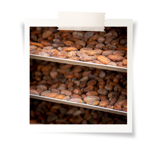 Les fèves sont concassées et séparées de leurs coques et peaux jusqu’à obtention du grué de cacao, refuge des éléments organoleptiques du chocolat.