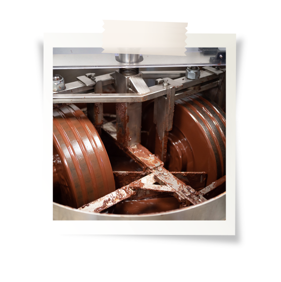Le conchage est un procédé d’affinage par brassage durant laquelle sont incorporés le Beurre de cacao et le sucre et qui est déterminant pour la finesse et l’onctuosité de votre chocolat.