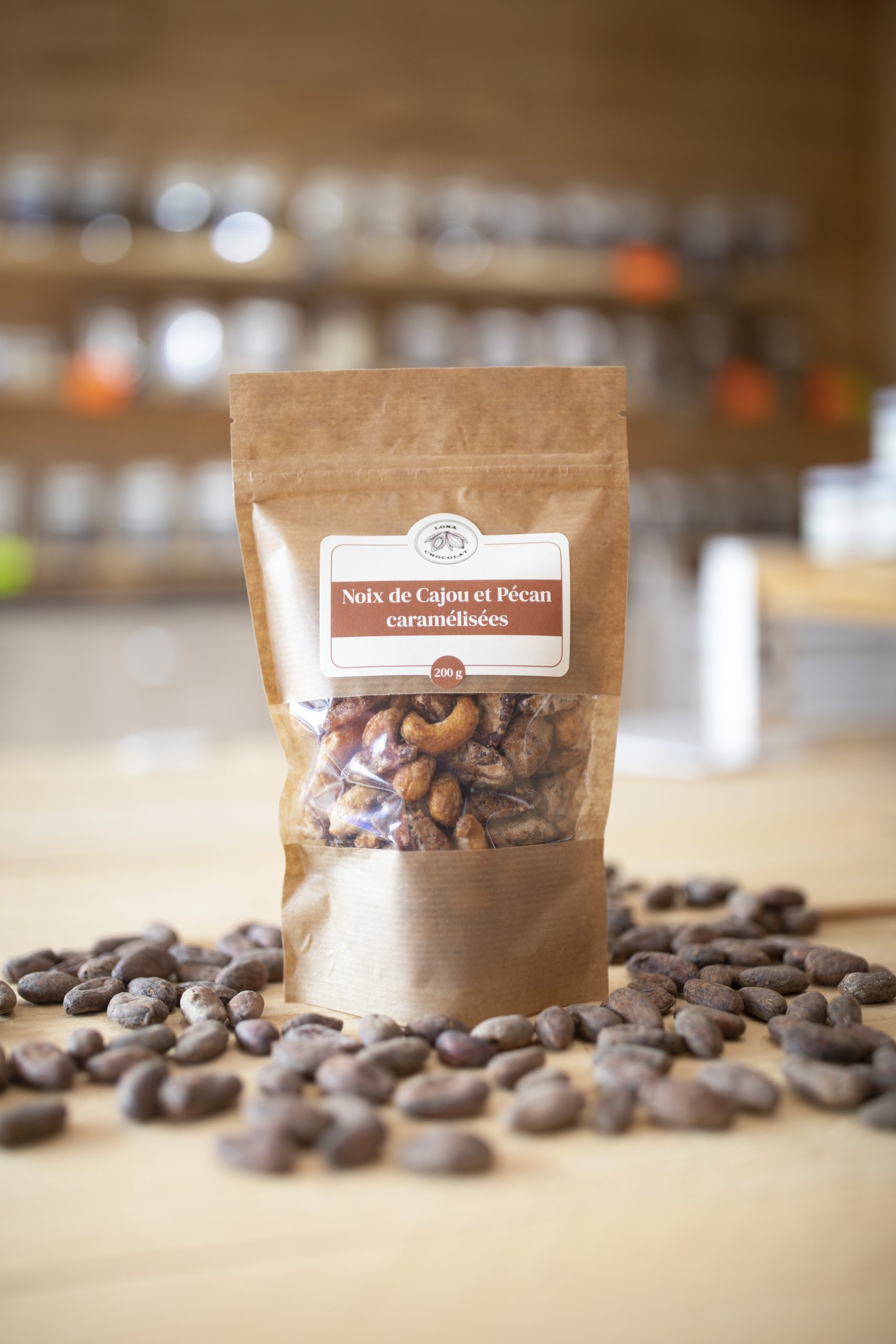 Noix de cajou, noix de pécan, sucre de canne, fleur de sel