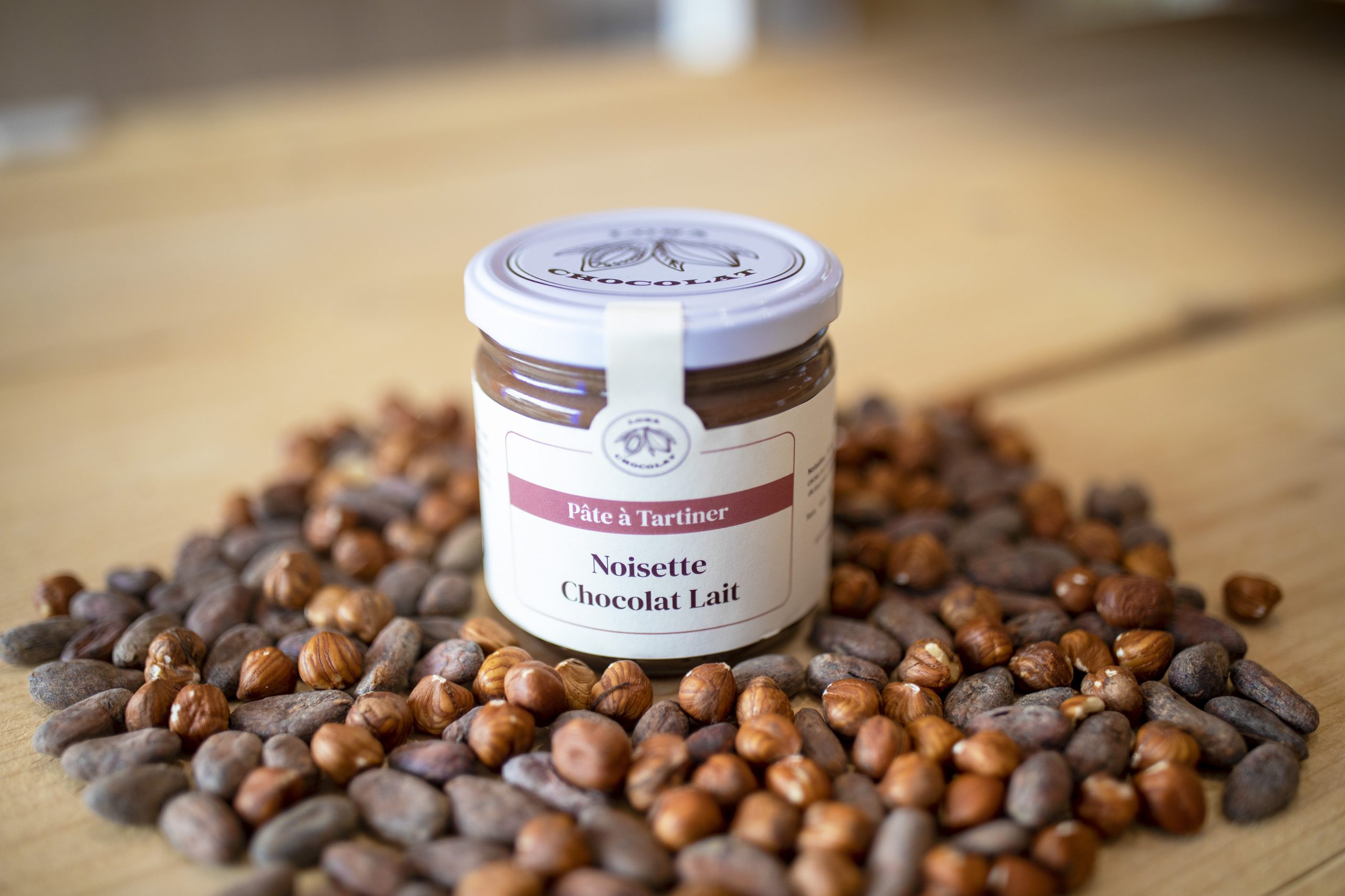 Pâte à tartiner broyée avec des noisettes.